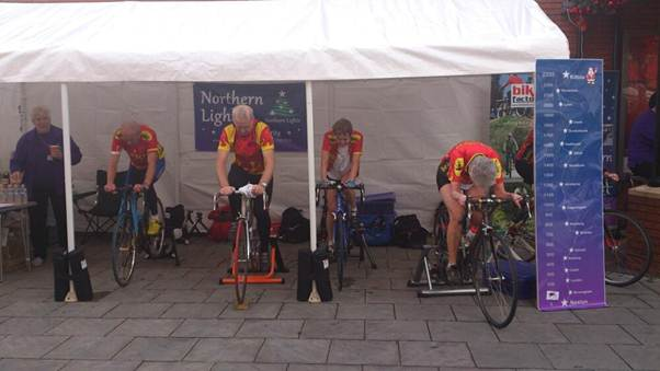 A big thank you goes to all the 111 riders who took part in the event, those who rode on turbo trainers on their own bikes as well as those who took a turn on the exercise bike. Thanks go to the riders from the local cycling clubs including Birkenhead North End, Port Sunlight Wheelers, Chester Go, PaleFish, Merseyside Triathlon, Chester Triathlon and riders from the Bike Factory as well as many other riders who volunteered their time to ensure we reached “Lapland”. In fact we managed to ride a massive 3,033 miles over the weekend. Special thanks go to Beth Maggs who rode an amazing 110 miles on the Sunday and Graeme Cummings who rode 102 miles on the Friday and to Gareth Powell who totaled 62 miles and Eric Blakemore who totaled 43 miles both on the exercise bike. An amazing effort by all our riders. Thanks also go to all the volunteers who gave their time to collect money in buckets during a very cold November weekend.